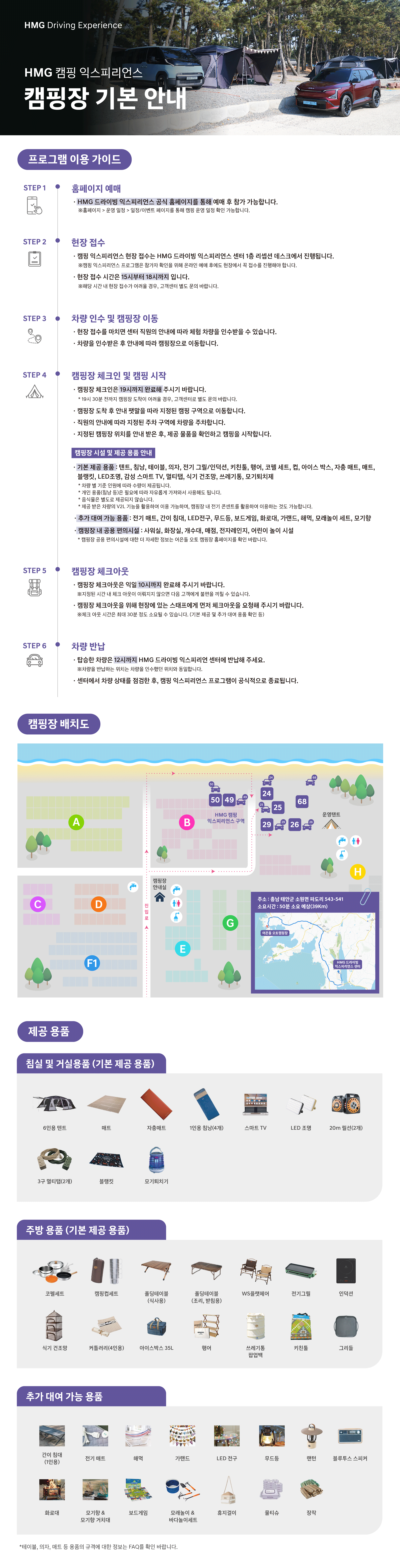 전기차의 주요 기능들을 활용하여 자연 속에서 스마트하고 감성적인 캠핑을 즐기는 프로그램입니다.
